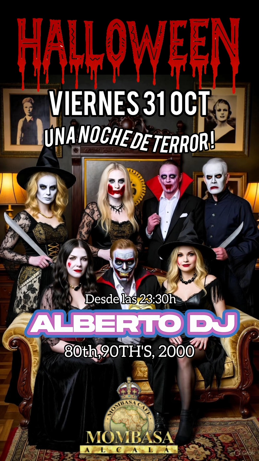 ¡El viernes 31 de octubre Mombasa se convierte en la mansión del miedo!🔥A partir de las 23:30h, Alberto DJ desentierra los temazos más macabros de los 80s, 90s y 2000 y pone la pista patas arriba🎧🎶