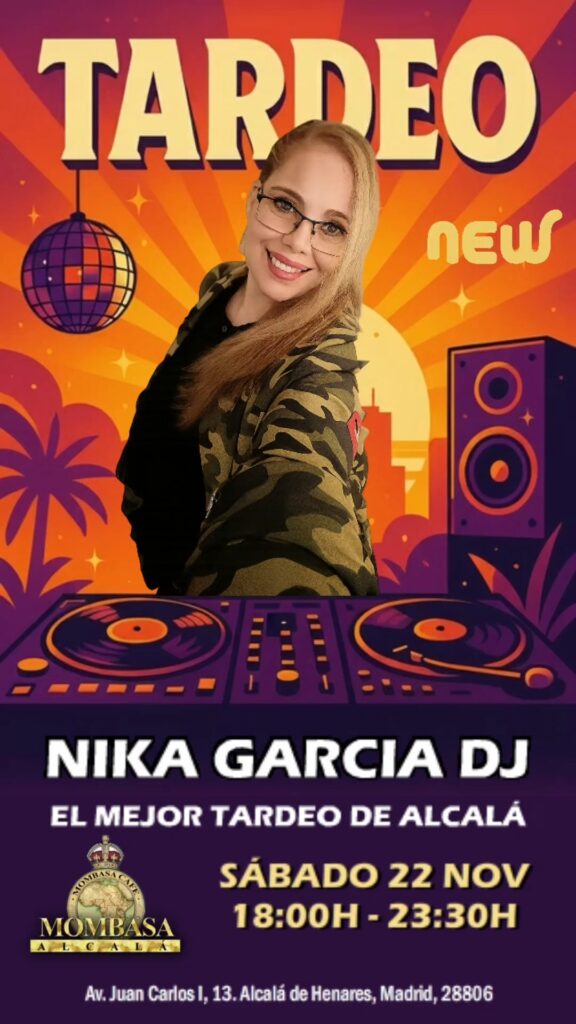 Actuaciones, Destacado, Mombasa Vibes 🎉 ¡Vuelve el mejor TARDEO de Alcalá! 🎶 15 de noviembre de 2025 El próximo sábado 22 de noviembre, ven a disfrutar de una tarde llena de música, buen rollo y energía con Nika García DJ al frente de la cabina 🎧 ✨Prepárate para bailar, reír y vivir un planazo diferente… ¡el cuerpo lo pide! 💃🕺🌴¡No te lo pierdas! Vamos a liarla bien rica 😍🔥 📍 Mombasa Alcalá ⏰ 18:00h – 23:30h Anterior 🔥 ¡DJ ALDOZZY ENCIENDE MOMBASA! 🔥 También te puede interesar Viernes 26 de julio, Aldozzy In Session 20 de julio de 2024 Fiesta, música y fútbol en un finde de locura en Mombasa 3 de febrero de 2025 ¡Este fin de semana no te puedes perder las noches que tenemos preparadas en Mombasa! 16 de septiembre de 2024 Dejar una respuesta Cancelar la respuestaTu dirección de correo electrónico no será publicada. Los campos obligatorios están marcados con *Nombre * Correo electrónico * Web Guarda mi nombre, correo electrónico y web en este navegador para la próxima vez que comente. Comentario