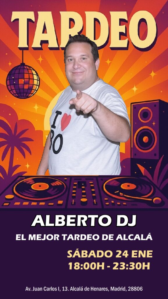 🟣 SÁBADO 24 ENERO – TARDEO 🕕 18:00 a 23:30 🎧 ALBERTO DJ: Un tardeo cercano y divertido, ideal para juntarse con amigos y disfrutar de una selección que siempre funciona 🥂🎵