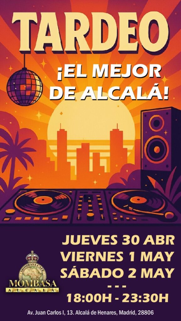 Actuaciones, Destacado, Mombasa Vibes 😏 Este puente te ibas a portar bien… pero no… 27 de abril de 2026 Tres días seguidos donde el tardeo no falla 🍹 y la noche aprieta como toca 🎶 Empiezas de día, sigues sin prisa… y acabas donde sabes 👀 🌞 Este jueves 30 abril, viernes 1 mayo y sábado 2 mayo 🕕 de 18:00h a 23:30h El tardeo que ya conoces: música, ambiente y cero ganas de irte 🔥 🌙 Y cuando cae la noche… 🌙🎧 Jueves: Alberto DJ 🕦 Desde las 23:30h🎧 Viernes: Alberto DJ 🕦 Desde las 23:30h🎧 Sábado: Kelokura DJ 🕦 Desde las 23:30h 💥 Puente en Madrid, plan en Alcalá. Sin complicaciones 😉 Anterior 🎤 CONCIERTO DE IDEM Tributo a Manolo García y El Último de la Fila 🔥 También te puede interesar ¡Este viernes 8 y sábado 9 de noviembre SÚPER FIESTA en Mombasa! 5 de noviembre de 2024 ¡Siente el ritmo y disfruta de la noche en Mombasa! 17 de febrero de 2025 🎧 ¡En Semana Santa se prende Mombasa Alcalá! 🎧 14 de abril de 2025 Dejar una respuesta Cancelar la respuestaTu dirección de correo electrónico no será publicada. Los campos obligatorios están marcados con *Nombre * Correo electrónico * Web Guarda mi nombre, correo electrónico y web en este navegador para la próxima vez que comente. Comentario